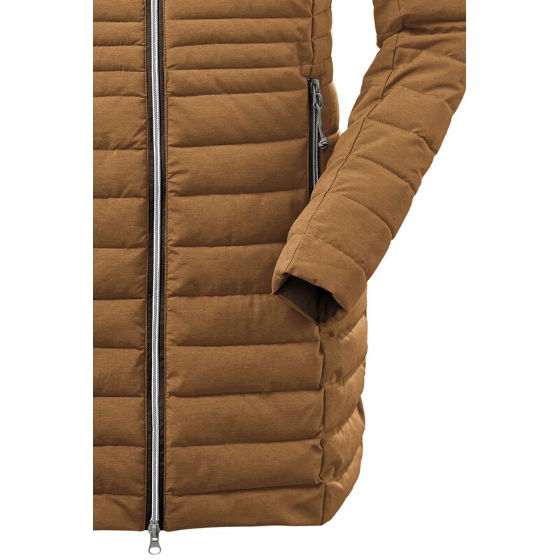 Женская функциональная парка с эффектом пуха от GIGA DX впечатляет облегающим кроем и подчеркивающей фигуру стёжкой. Стёганая парка водоотталкивающая и ветронепроницаемая (гидростатическое давление 8000 мм), а также дышащая. Отстёгивающийся капюшон на молнии и высокий воротник-стойка обеспечивают дополнительную защиту от ветра и дождя. Два боковых кармана застёгиваются на молнии. Двусторонняя молния расстёгивается сверху и снизу, обеспечивая свободу движений. Парка также оснащена практичной защитой подбородка. Для killtec особенно важно делать свои коллекции более экологичными и актуальными в будущем. Поэтому killtec уделяет всё больше внимания ответственным производственным процессам. Поэтому эта парка пропитана веществами, не содержащими фтора.