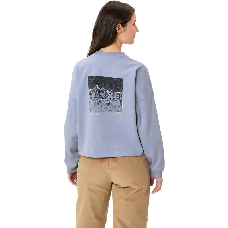 Повседневная женская рубашка с длинными рукавами, облегающим круглым вырезом и современным кроем #красивые швы на плечах #крупный принт на спине #изготовлено полностью из органического хлопка, сертифицированного GOTS, и произведено в Португалии