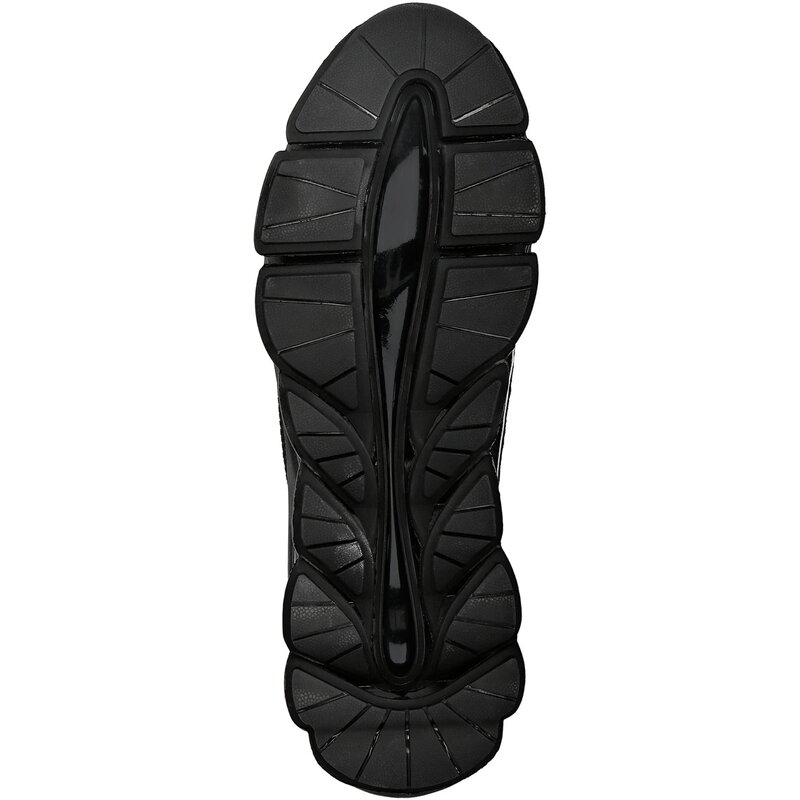 Верх из трикотажного носка и технологичных материалов перекрывает друг друга для надежной и плотной посадки.