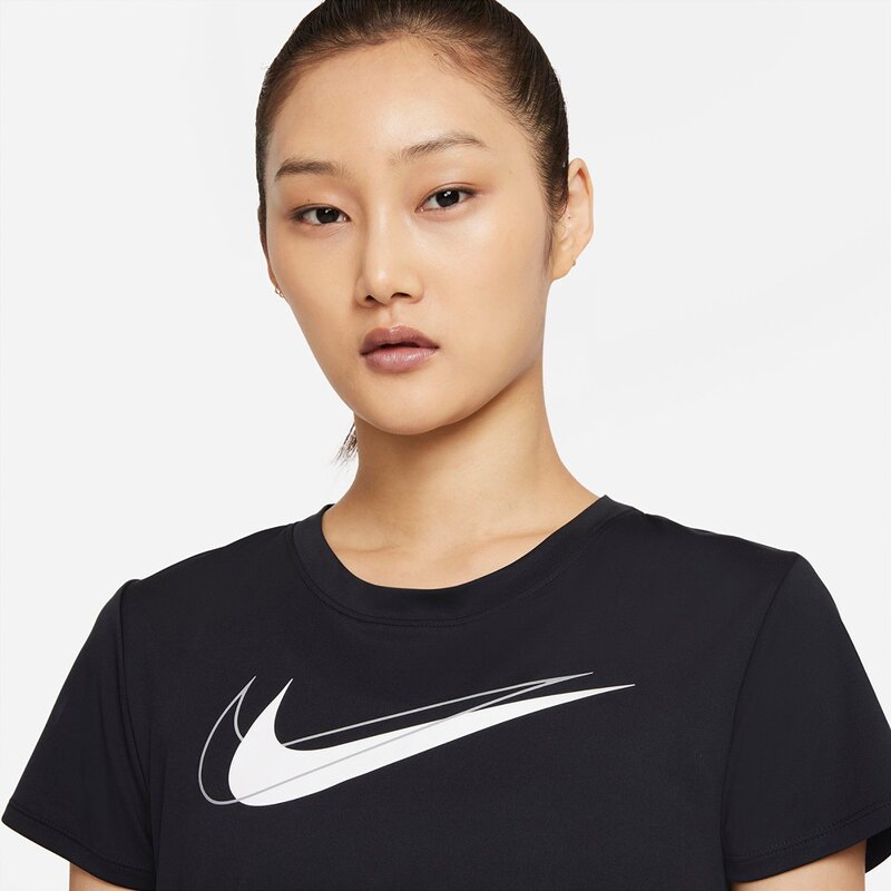 НЕОБХОДИМЫЙ ЭКСТРАКТ Swoosh. Отправляйтесь в путь прямо сейчас с этой новой версией незаменимой беговой вещи. Футболка Nike Swoosh Run выполнена из лёгкой ткани с переплетённой графикой. Боковые разрезы обеспечивают свободу движений во время бега. Изделие изготовлено из 100% переработанного полиэстерового волокна. Бегите под Swoosh. Коллекция Swoosh Run продолжает предлагать классические силуэты с современной графикой. Два логотипа Swoosh — один с матовой отделкой, другой с блестящим контуром — переплетаются, придавая старому любимому образу новый облик. Легкая и влагоотводящая технология Nike Dri-FIT отводит пот с кожи, обеспечивая быстрое испарение, помогая вам оставаться сухим и чувствовать себя комфортно. В сочетании с лёгким и дышащим трикотажным материалом она создаёт плотный, непрозрачный дизайн. Изогнутые боковые разрезы обеспечивают свободу движений. Нижний край футболки доходит до бёдер.