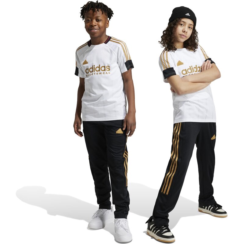 Эти брюки adidas для юниоров и подростков предлагают спортивный стиль. Их дизайн с цветовыми блоками и смелые три полоски отдают дань уважения столкновению наций на футбольных соревнованиях. Ткань интерлок и классический крой обеспечивают комфорт, независимо от того, смотрите ли вы игру дома или в дороге. Суженные штанины и заниженный шаговый шов создают современный образ, который легко сочетать с футболкой и спортивной курткой. Это изделие изготовлено не менее чем на 70% из переработанных материалов. Повторное использование существующих материалов помогает нам сократить отходы, ограничить нашу зависимость от невозобновляемых ресурсов и уменьшить углеродный след нашей продукции.