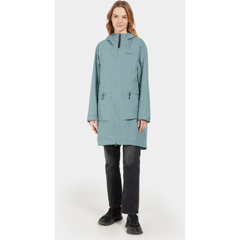 Eliana — лёгкая летняя парка, сочетающая в себе стиль и функциональность для активного отдыха. Она ветро- и водонепроницаема, имеет герметичные швы и изготовлена из дышащего материала, идеально подходящего для переменчивой погоды. Парка имеет свободный крой и регулируемый пояс на шнурке для индивидуальной подгонки силуэта. Фиксированный капюшон регулируется для дополнительной защиты, а регулируемые манжеты на липучках обеспечивают удобную посадку. Двусторонняя молния спереди обеспечивает хорошую вентиляцию и свободу движений. Практичные карманы на молнии снаружи и внутри обеспечивают надёжное хранение ваших вещей. Светоотражающие детали, включая логотип, повышают видимость в темноте.