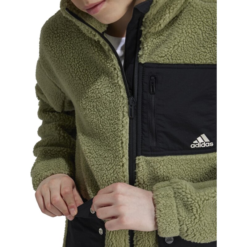 Эта флисовая куртка adidas для детей и подростков согреет вас в холод. Носите ее отдельно или под пальто. Изготовлена из легкого и уютного флиса и имеет свободный крой, обеспечивая оптимальную свободу движений во время прогулок на свежем воздухе. Вместительные карманы позволяют держать телефон и закуски под рукой. Изделие изготовлено из 100% переработанных материалов. Повторное использование существующих материалов помогает сократить отходы, уменьшить нашу зависимость от невозобновляемых ресурсов и уменьшить наш углеродный след.