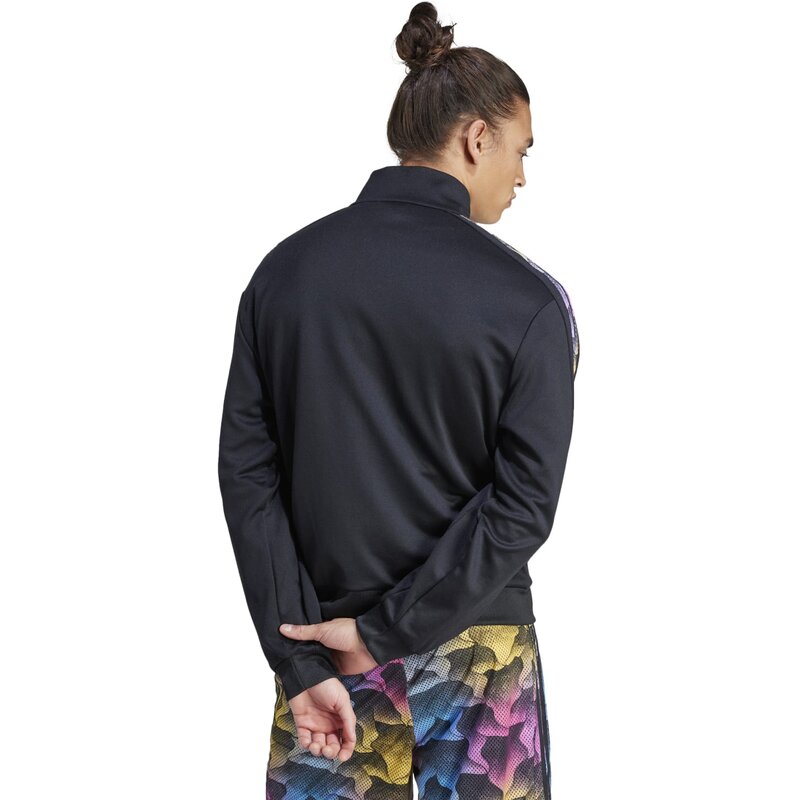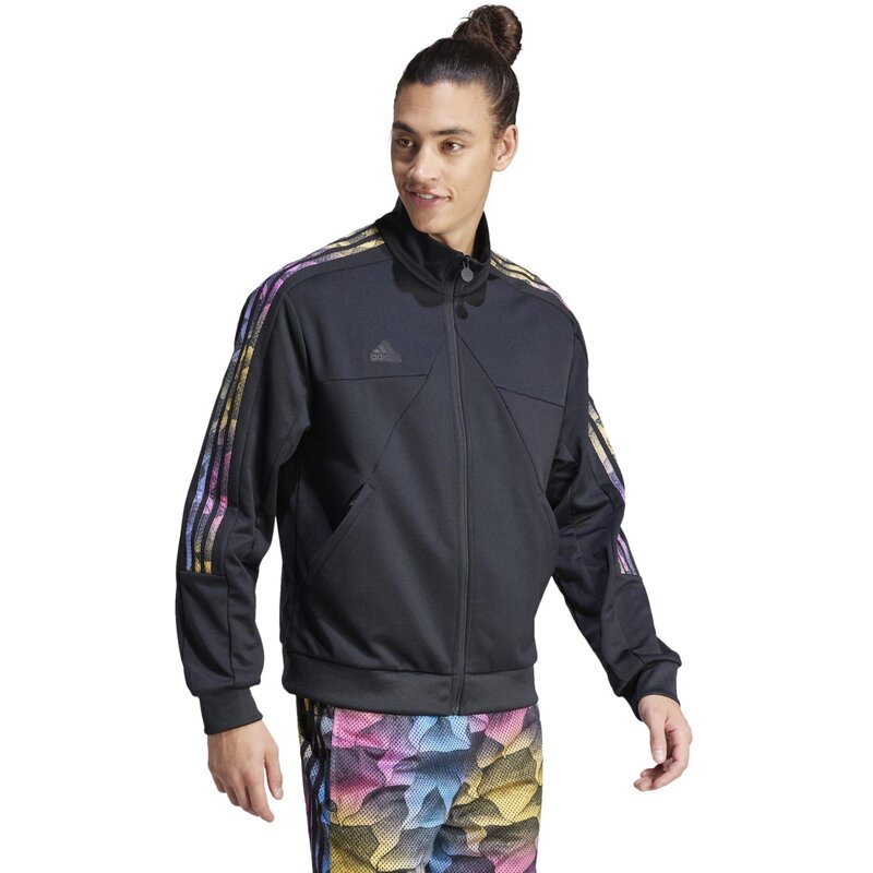 Эта свободная спортивная куртка с классическими тремя полосками на рукавах выглядит спортивно и стильно, излучая модный стиль. Наденьте её застёгнутой поверх футболки для поездки в город или расстёгнутой поверх майки на очередном фестивале — выбор за вами. Ребристые манжеты и практичные карманы на молнии обеспечивают дополнительный комфорт. Изделие изготовлено как минимум на 70% из переработанных материалов. Повторное использование существующих материалов помогает нам сократить отходы, уменьшить зависимость от невозобновляемых ресурсов и уменьшить углеродный след нашей продукции.