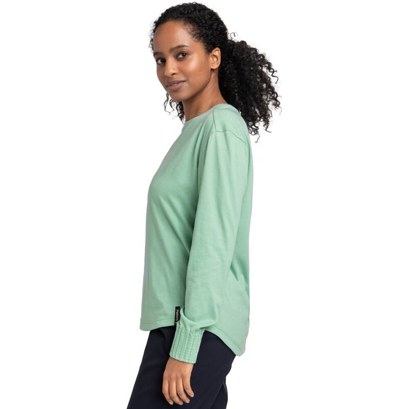 В этом женственном топе с длинными рукавами от Schöffel вы насладитесь высоким комфортом и стильными деталями. Сочетание быстросохнущего трикотажного полотна с переработанными и натуральными волокнами обеспечивает приятное ощущение на коже и оптимальный отвод влаги. Слегка спущенная линия плеча и широкие, аккуратно собранные манжеты рукавов подчеркивают женственный образ. Закругленный подол и смещенный вперед плечевой шов обеспечивают свободу движений и гибкость — идеально для спокойного дня в городе или в дороге.