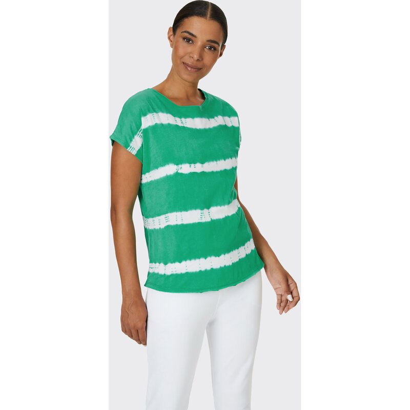 Функциональность и комфорт для оптимальной производительности: женская спортивная футболка ZARAH с привлекательным кроем и круглым вырезом! Приталенный крой, идеальная посадка и полная свобода движений: откройте для себя спортивную футболку ZARAH с приталенном кроем и круглым вырезом от VENICE BEACH. Уютно ли вы отдыхаете на диване, занимаетесь фитнесом или наслаждаетесь бранчем в выходные, эта многофункциональная спортивная одежда всегда обеспечит вам желаемый комфорт. Таким образом, спортивная футболка ZARAH обеспечивает оптимальную производительность и функциональность для любого вида деятельности. Современный внешний вид — круглый вырез и эффект батика также придают спортивной футболке ZARAH визуальные акценты!