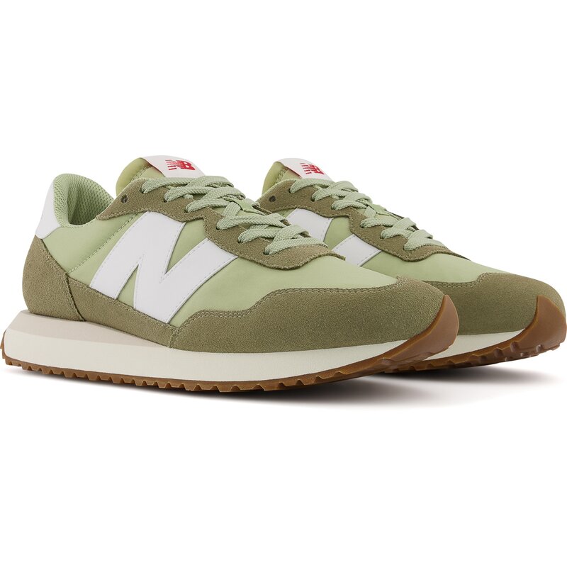 Кроссовки New Balance 237 вдохновлены дизайном 1970-х годов, сочетая традиционные элементы с современным стилем. В модели 237 используются классические элементы, такие как промежуточная подошва из ЭВА, протекторная подошва с елочкой и обтекаемый верх, которые сочетаются с современными деталями, такими как крупный логотип N и удлиненная промежуточная подошва. Экспериментальные, но доступные, кроссовки 237 — это поразительно простая и современная модель.