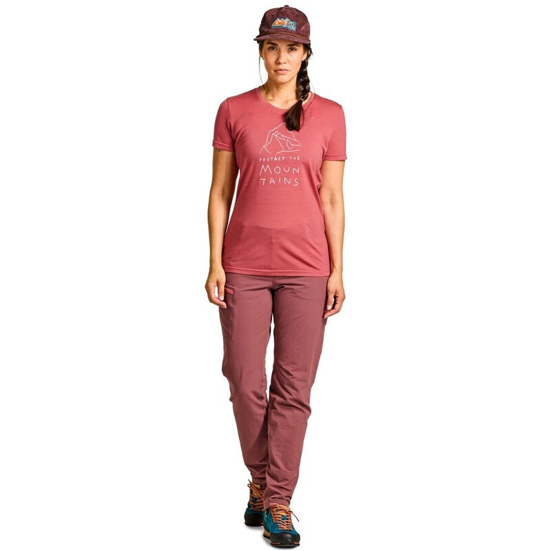 Прочное, надежное и устойчивое охлаждение: благодаря прочной пряже и естественному охлаждающему эффекту Tencel женская футболка 150 MERINO COOL идеально подходит для жарких летних дней в горах. Технология BETA-SPUN придает футболке 150 COOL MTN PROTECTOR необходимую прочность: защитное полиамидное покрытие делает ткань более устойчивой к истиранию и разрывам. В то же время тонкие волокна мериноса обеспечивают уникальный комфорт и оптимальный микроклимат тела, а волокна Tencel с их гладкой поверхностью и высокой скоростью испарения охлаждают в жаркую погоду. Поэтому женская футболка 150 COOL MTN PROTECTOR станет идеальным спутником, особенно в теплые летние дни.