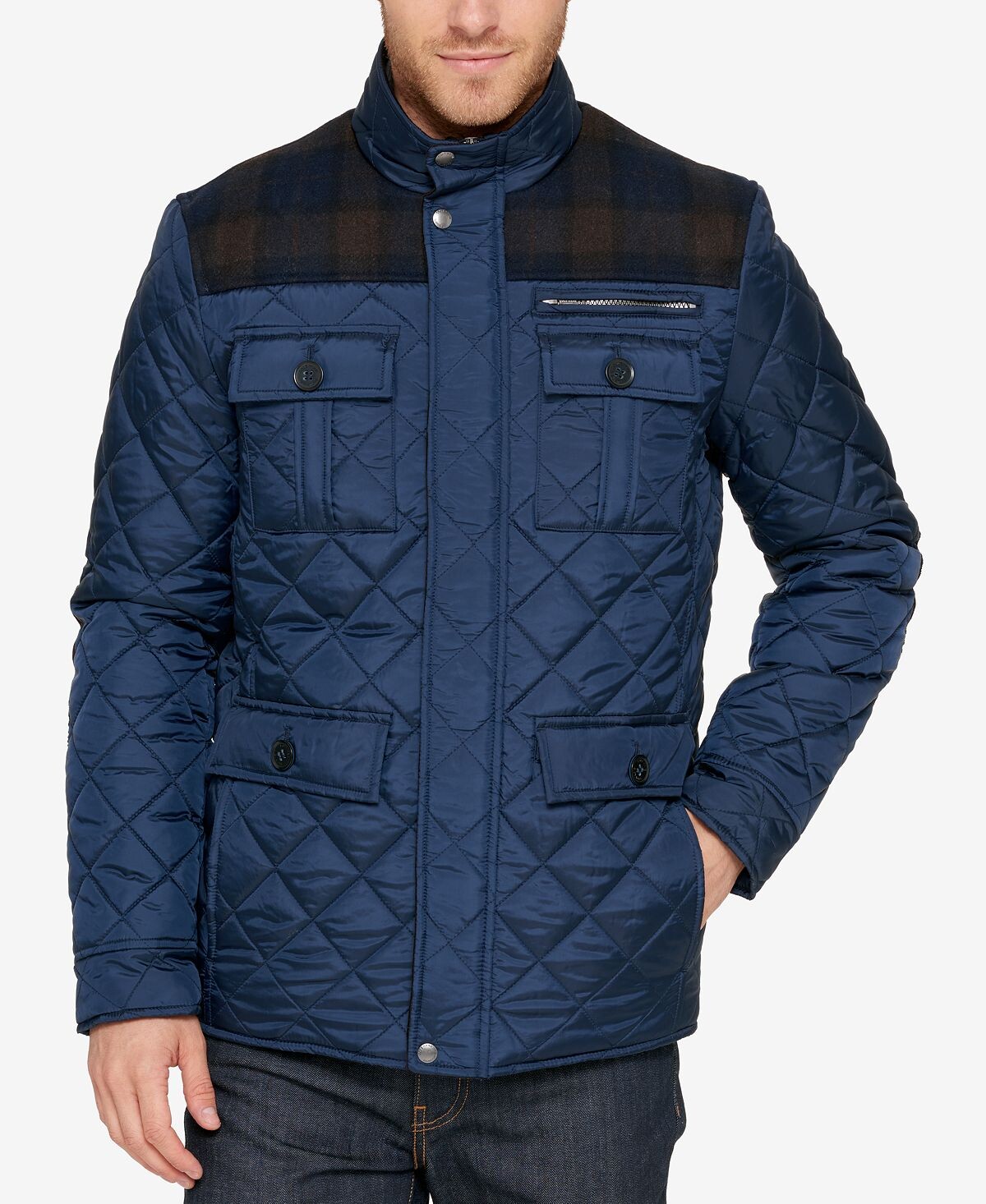 Эта стеганая куртка от Cole Haan станет стильным дополнением вашего гардероба благодаря дизайну с шестью карманами и стеганому дизайну.