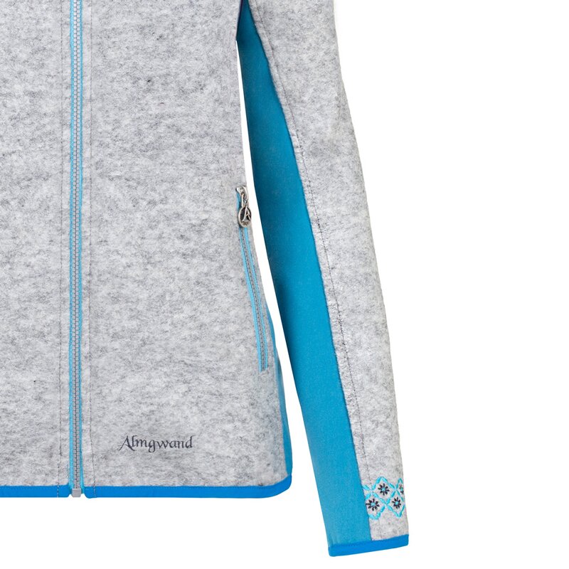 Куртка с капюшоном Greifenberg от Almgwand – настоящий законодатель моды благодаря графическому цветочному узору, который делает её одновременно игривой и стильной. Этот же узор повторяется на рукаве в виде вышивки, придавая куртке дополнительный изысканный вид. Летняя шерсть в сочетании с трикотажным флисом обеспечивает максимальную свободу движений. Эластичная окантовка защищает от ветра и холода. Молния спереди и боковые карманы на молнии с бирками Almgwand идеально дополняют модный спортивный дизайн. Производство в Европе гарантирует соответствие европейским стандартам производства – как в плане экологии и устойчивого развития, так и в плане условий труда.