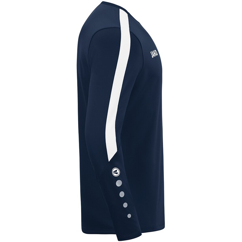 Основной материал Sweat Power изготовлен из 100% переработанного полиэстера. Рукава особенно эластичны благодаря смеси полиэстера и эластана и обеспечивают достаточную свободу движений. Среди особенностей JAKO Sweat Power — контрастная вставка с сотовой структурой, лейбл Teamline и сотовый дизайн.