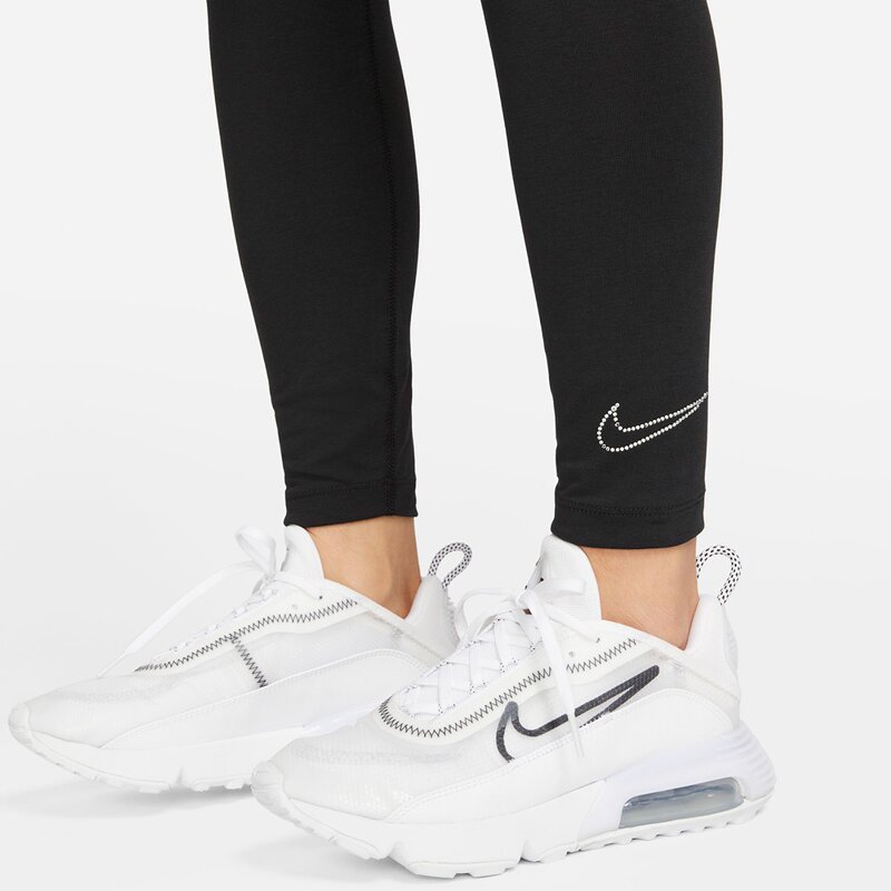 Найдите свой ежедневный фитнес в леггинсах Nike Sportswear со средней посадкой. Изготовленные из мягкого трикотажного материала с поддержкой, они идеально дополнят ваши любимые топы и худи. Их расширенная средняя посадка обеспечивает комфортную посадку чуть ниже пупка и доходит до щиколотки. Этот эластичный трикотаж, выбранный за свою невероятную мягкость, поддержку и универсальность, создан для ношения в течение всего дня. Эластичный и поддерживающий пояс доходит чуть ниже пупка. Инкрустированная стразами графика Futura придаст вашим любимым кроссовкам сияющий вид.