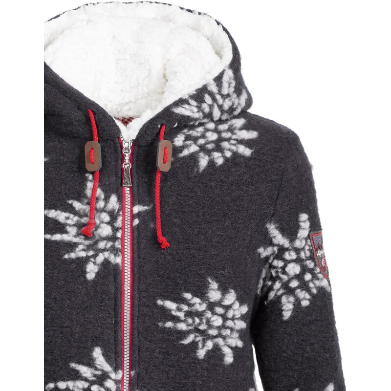 Уютный образ для холодных дней: трикотажная флисовая куртка Wildalpe от Almgwand такая же пушистая и мягкая, как и выглядит. Высокое содержание шерсти обеспечивает отличное тепло. Мягкая плюшевая подкладка капюшона защищает от ветра и холода. Стилизованные цветы эдельвейса добавляют великолепный визуальный акцент. Два кармана на молнии с клетчатой подкладкой, эластичные края и подвески в виде оленьих рогов на молниях — дополнительные детали высокого качества. Сделано в Европе — гарантия европейских стандартов производства — как с точки зрения экологических стандартов и стандартов устойчивого развития, так и условий труда. Содержит нетекстильные части животного происхождения.