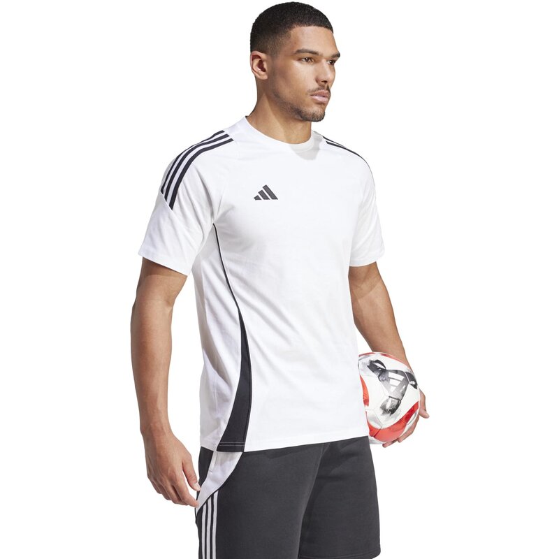Вы выкладываетесь по полной на футбольной тренировке. А после тренировки побалуйте себя заслуженным комфортом в этой мягкой футболке. Она входит в коллекцию adidas Tiro 24 и украшена логотипом «3 полоски» на груди и на плечах, что придает ей спортивный вид. Хлопок для этого изделия поставляется в рамках программы Better Cotton Initiative. Better Cotton поставляется по модели баланса массы и цепочки поставок. Это означает, что путь Better Cotton невозможно отследить до конечного продукта. Узнайте больше здесь: https://bettercotton.org/who-we-are/our-logo