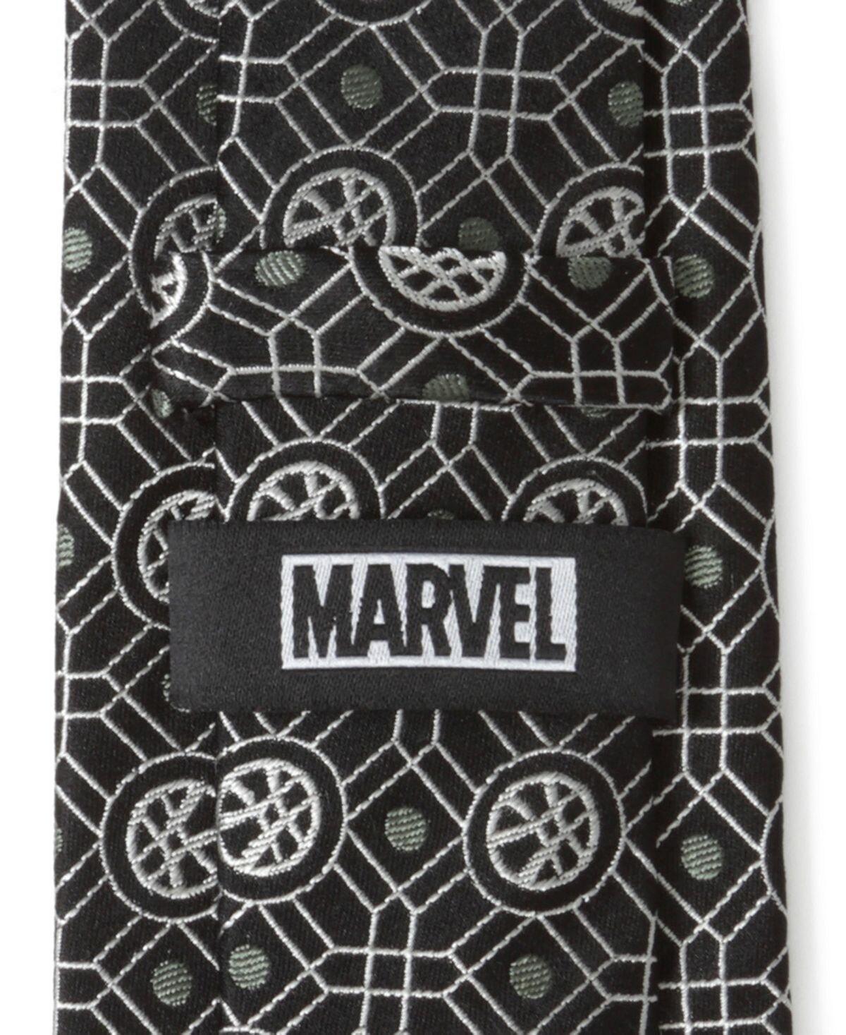 Этот галстук, подходящий для такого человека, как Стивен Стрэндж, украшен сложной геометрической строчкой, окружающей ряды эмблем Доктора Стрэнджа. В качестве дополнительного штриха к дизайну и намека на камень времени точки, вышитые шалфейно-зеленым цветом, добавляют ярких красок.