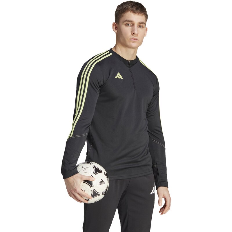 Эта спортивная футболка adidas Tiro 23 Club идеально подходит для прохладных дней. Она оснащена молнией на груди и прорезями для больших пальцев на манжетах, поэтому её легко надеть на руки, чтобы согреться. Технология AEROREADY обеспечивает сухость и комфорт, а мягкий трикотаж обеспечивает комфорт. В рамках нашего обязательства по сокращению пластиковых отходов этот продукт изготовлен из 100% переработанных материалов.
