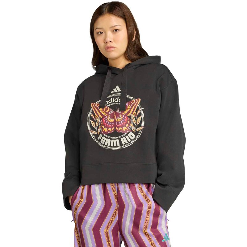 Расправьте крылья в этой толстовке adidas x FARM. Вдохновленная яркой культурой и природными чудесами Колумбии, графика с бабочками, встроенная в ткань, символизирует рост, перемены и новые начинания. Свободный крой позволяет свободно двигаться между тренировками и играми, а мягкий флис согреет вас, когда вам нужен перерыв. Носите её где угодно и чувствуйте себя грациозной, красивой и сильной, как бабочки, вдохновившие её создание.