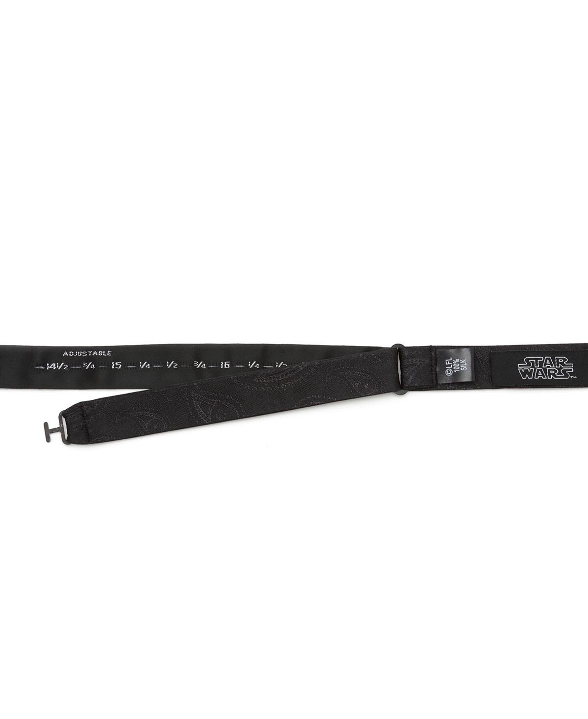 На этом черном галстуке-бабочке посередине дискретного узора пейсли изображены легендарные шлемы Дарта Вейдера. Полностью регулируемый ремешок подходит для большинства размеров шеи.
