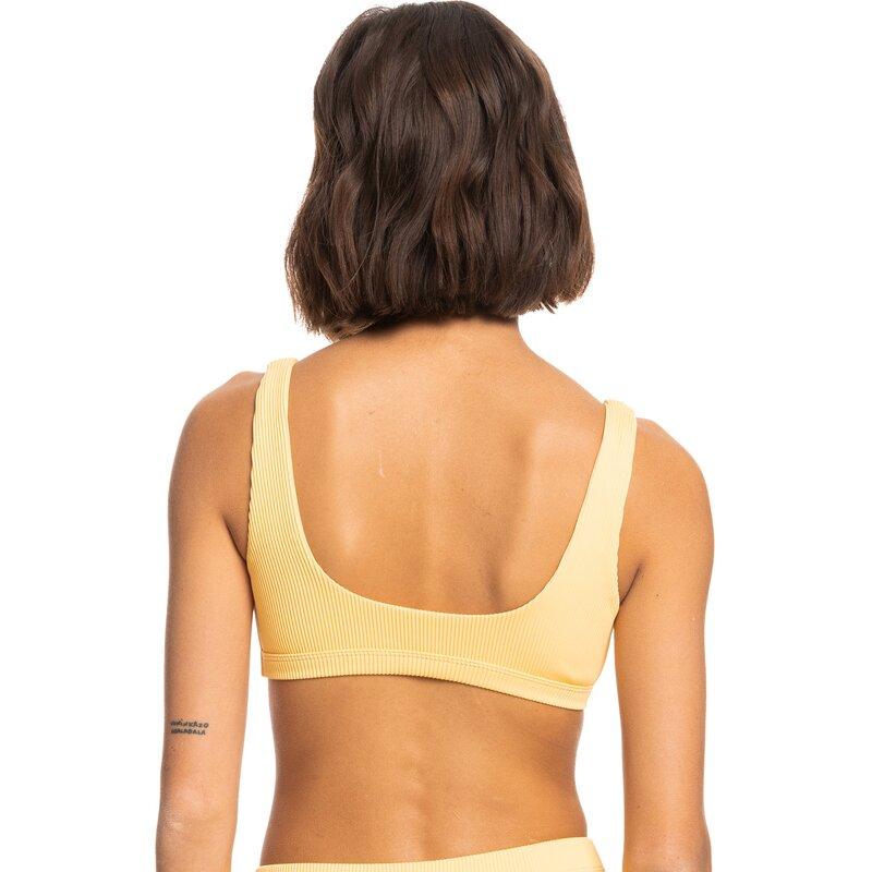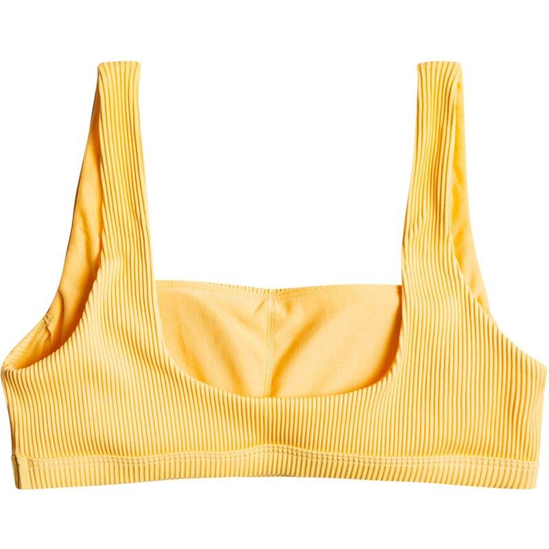 Женский бикини-топ. Характеристики: Экологичный материал: мягкий, прочный, переработанный и эластичный ребристая нейлоновая смесь, спортивный верх, Воротник/вырез: квадратный, несъемные бретели, стандартная поддержка, съёмные подкладки, подходит для чашек A/B/C, фиксированная застёжка, полная защита, резиновый логотип ROXY. Другие особенности: вырез спереди позволяет игриво расположить ребристой вязке.