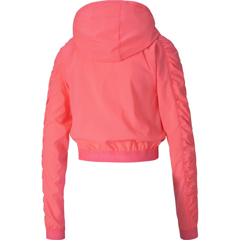 Женственность и функциональность. Вы гарантированно выделитесь в этой лёгкой укороченной спортивной куртке с оборками, создающими женственный образ. Функциональность обеспечивается технологией PUMA dryCELL, которая регулирует температуру и отводит влагу.