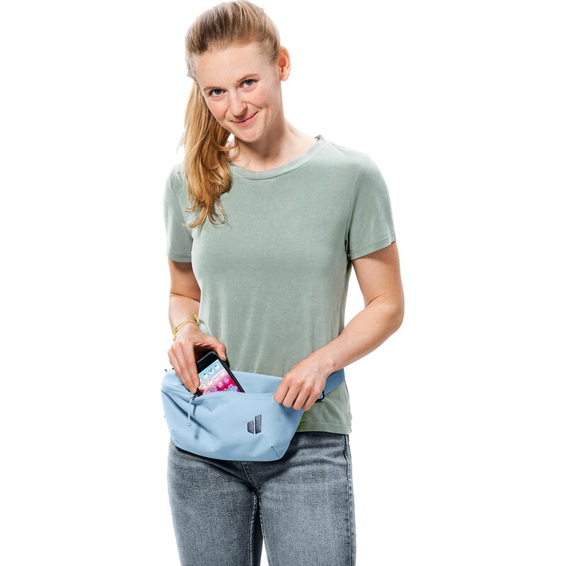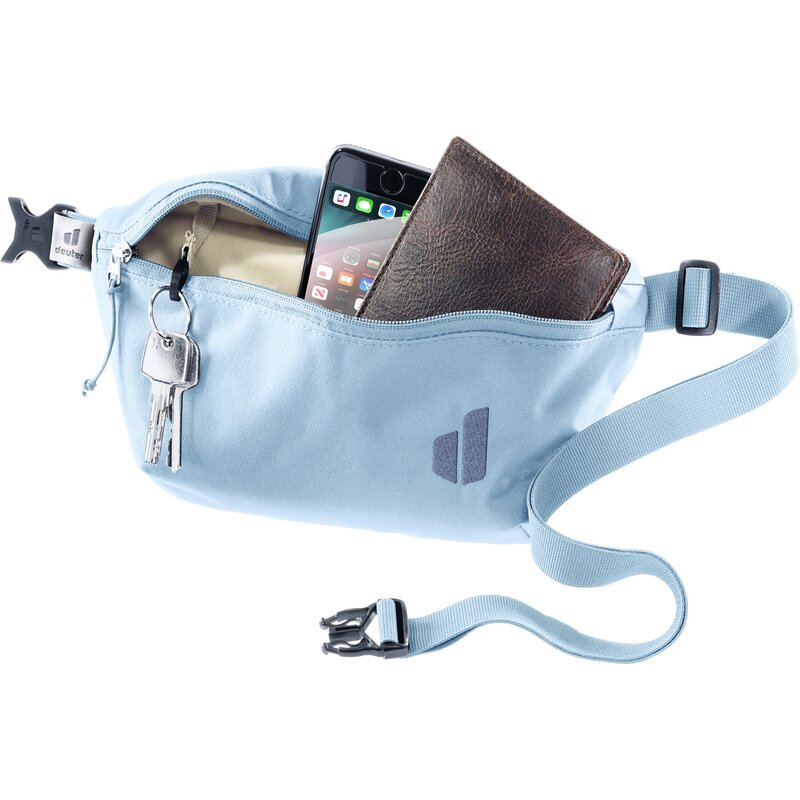 Передний карман на молнии, регулируемый поясной ремень, карабин для ключей, просторное основное отделение с большим отверстием