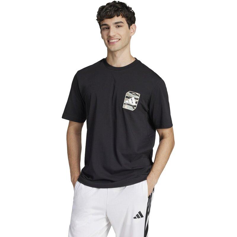 Идеальный повседневный спутник. Эта футболка adidas украшена изящной графикой на груди, вдохновлённой классическими европейскими камуфляжными узорами. Хлопковый материал приятен на ощупь, а свободный крой легко сочетается с любой одеждой в вашем гардеробе — от спортивных брюк до джинсов.
