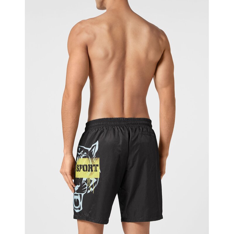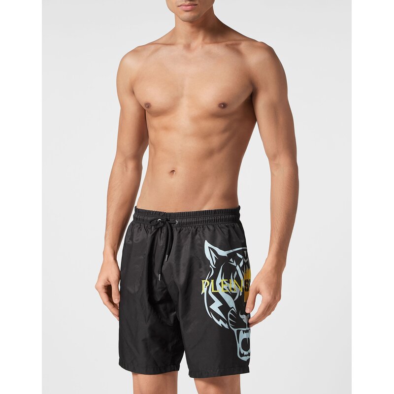 Живите на свежем воздухе с энтузиазмом. Эти лёгкие шорты разработаны для использования в морской воде, бассейне и на площадках для пляжного волейбола. Прочная и невероятно удобная полиэстеровая ткань. Эластичный пояс со шнурком. Прорезные карманы. Принт с тигром и логотипом на левой штанине. Сетчатая подкладка.