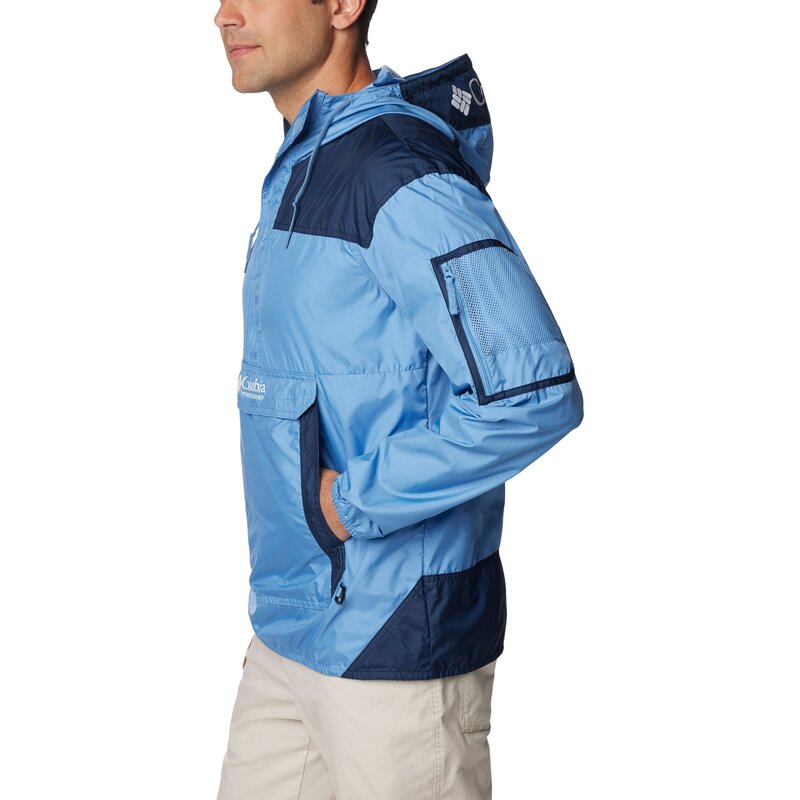 Сразитесь с ветром и непогодой в этой водонепроницаемой ветровке — культовой модели из коллекции Columbia. Логотип Columbia украшает капюшон и карман-кенгуру. Куртка застегивается на молнию до середины бедра для дополнительной стильности и защиты. Также предусмотрен карман на левом рукаве для надежного хранения ценных вещей.