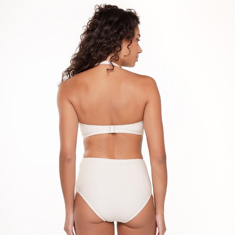 Проснитесь и пойте в этой фантастической серии! Эти модели привлекают внимание роскошной фактурной тканью и золотистыми аксессуарами. Этот бикини-топ бандо с подкладкой и регулируемой съёмной бретелькой через шею.