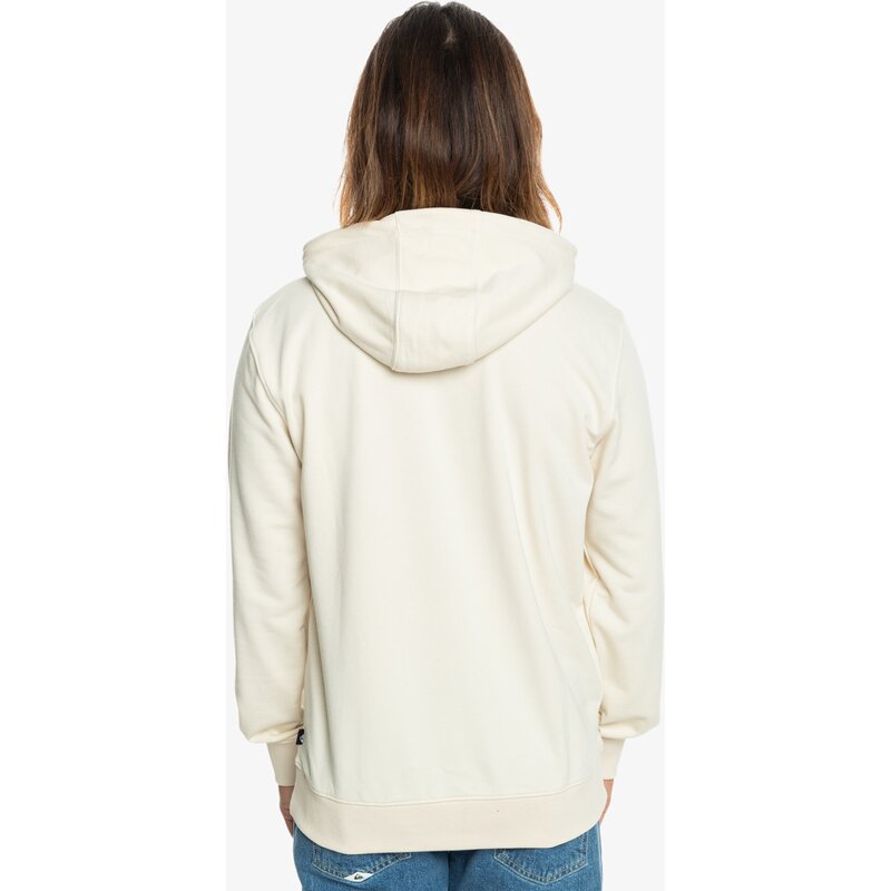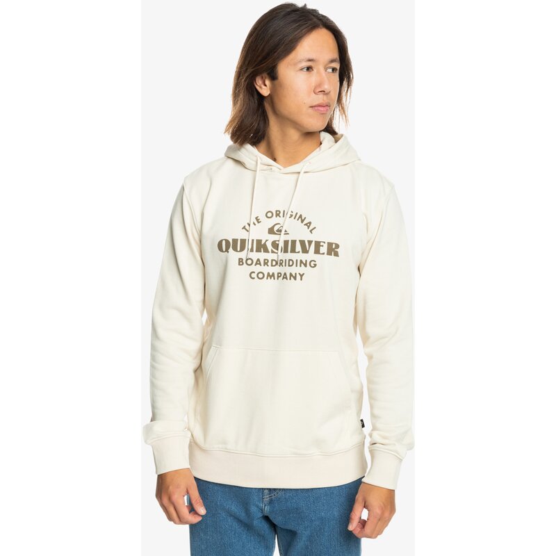 Мужская толстовка с капюшоном. Характеристики: переработанный французский трикотаж из полиэстера и органического хлопка [280 г/м²], классический крой, воротник-капюшон, длинные рукава, карманы-кенгуру, подкладка капюшона из той же ткани, что и торс, логотип Quiksilver (трафаретная печать) спереди, этикетка Quiksilver из переработанного материала, а также другие особенности: тональная резинка на манжетах и нижнем крае.