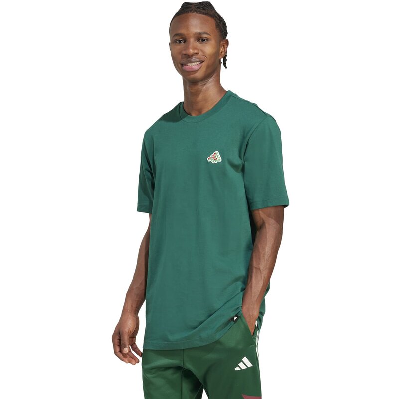 Встречаетесь ли вы с друзьями за ужином или отдыхаете дома, эта футболка с принтом от adidas обеспечит вам комфорт. Она сшита из мягкого трикотажного полотна и обеспечит комфорт на весь день. Игривая графика на груди изображает логотип «Три полоски» в виде кусочка пиццы.