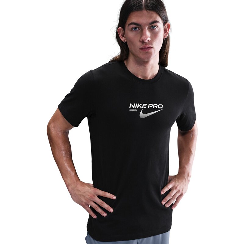 Эта дышащая футболка Nike Pro с технологией Dri-FIT отводит пот, позволяя вам сосредоточиться на следующей цели.