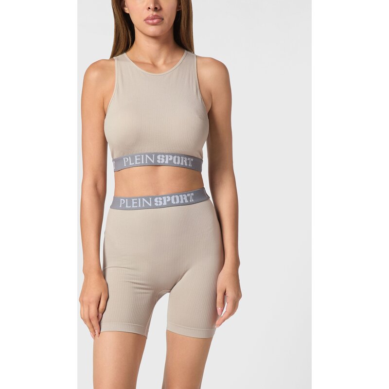 Plein Sport даёт вам возможность выделиться даже во время интенсивных тренировок. Обратите внимание на этот укороченный трикотажный топ. Ребристый хлопковый трикотаж. Жаккардовая надпись. Эластичный нижний край.