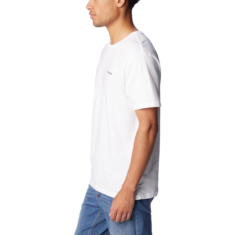 Если вы много времени проводите в пути, вам стоит обратить внимание на эту классическую модель. Мужская повседневная футболка Columbia выполнена из органического хлопка, имеет классический крой, ребристый круглый вырез горловины и короткие рукава с контрастным принтом логотипа спереди и более мелким принтом на рукаве.