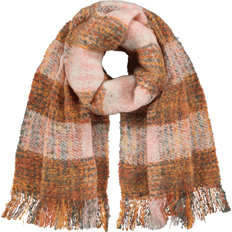 Шарф Kristinam — мягкий, сотканный шарф с блочным узором. Пряжа неравномерного плетения обеспечивает мягкость. Шарф изготовлен из 100% акрила. Концы шарфа украшены бахромой. Размер: 180 x 50 см (длина x ширина).