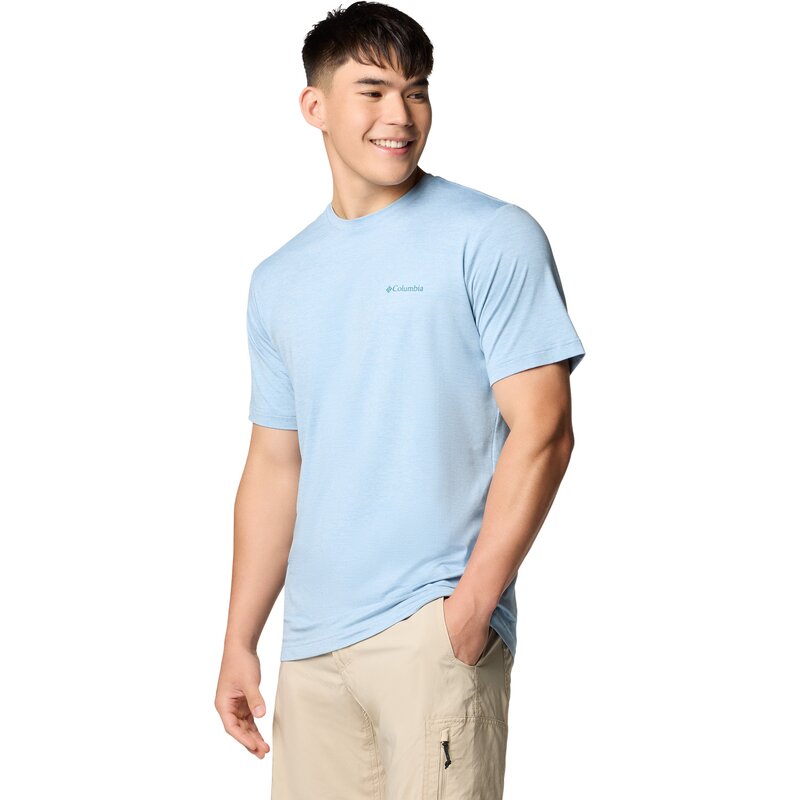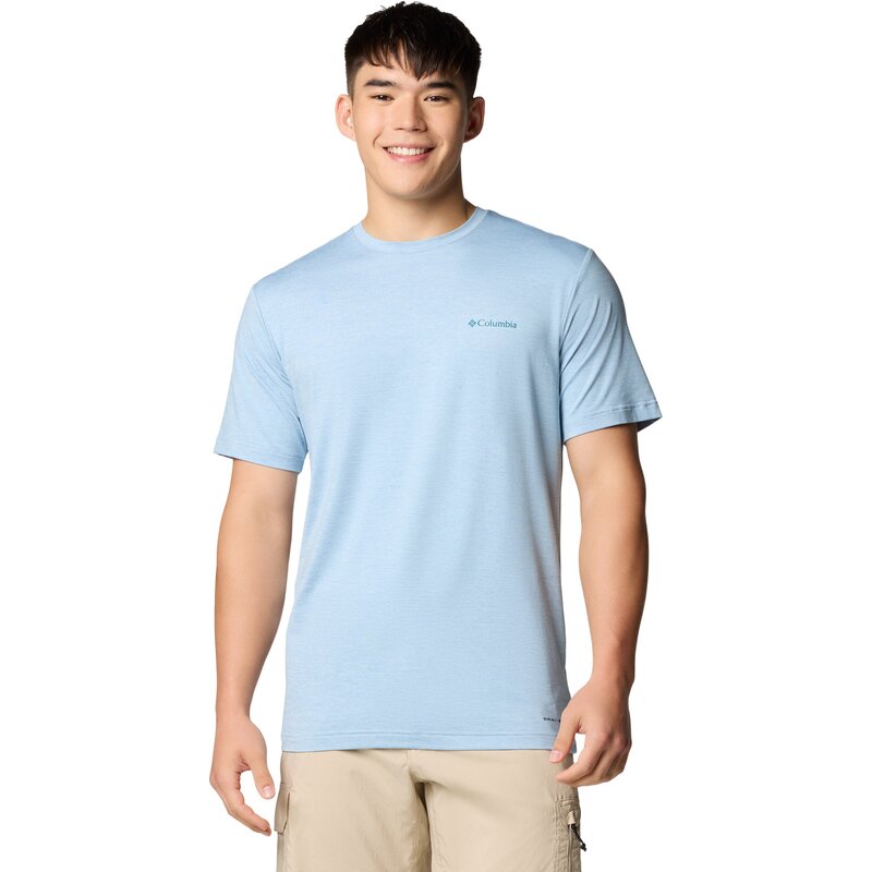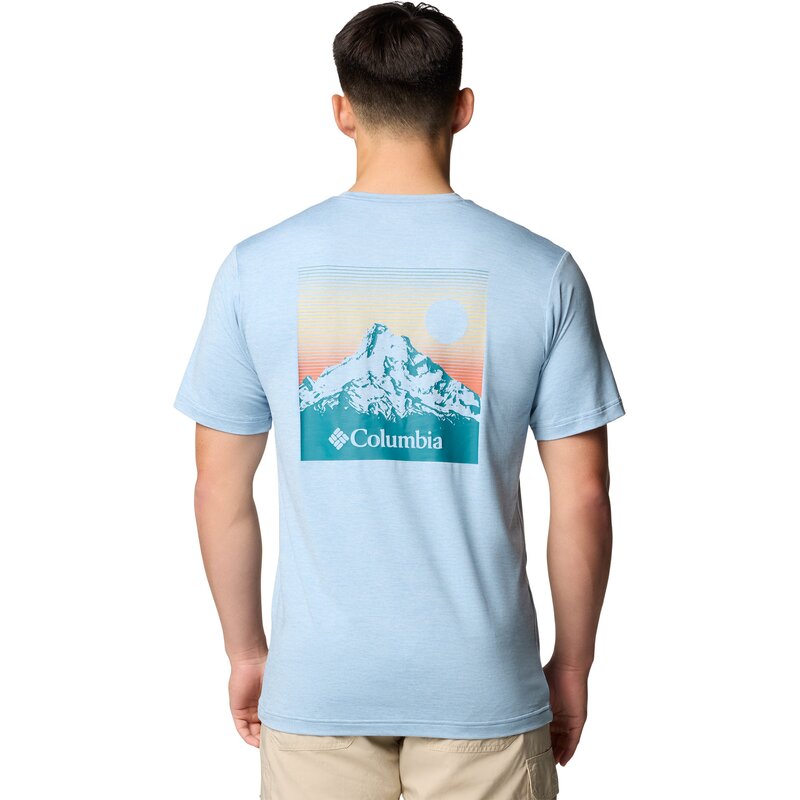 Оставайтесь в форме в этой технологичной мужской футболке Columbia с принтом. Удобная эластичная ткань и влагоотводящая конструкция сохранят свежесть и стильный вид, куда бы вас ни завели приключения.