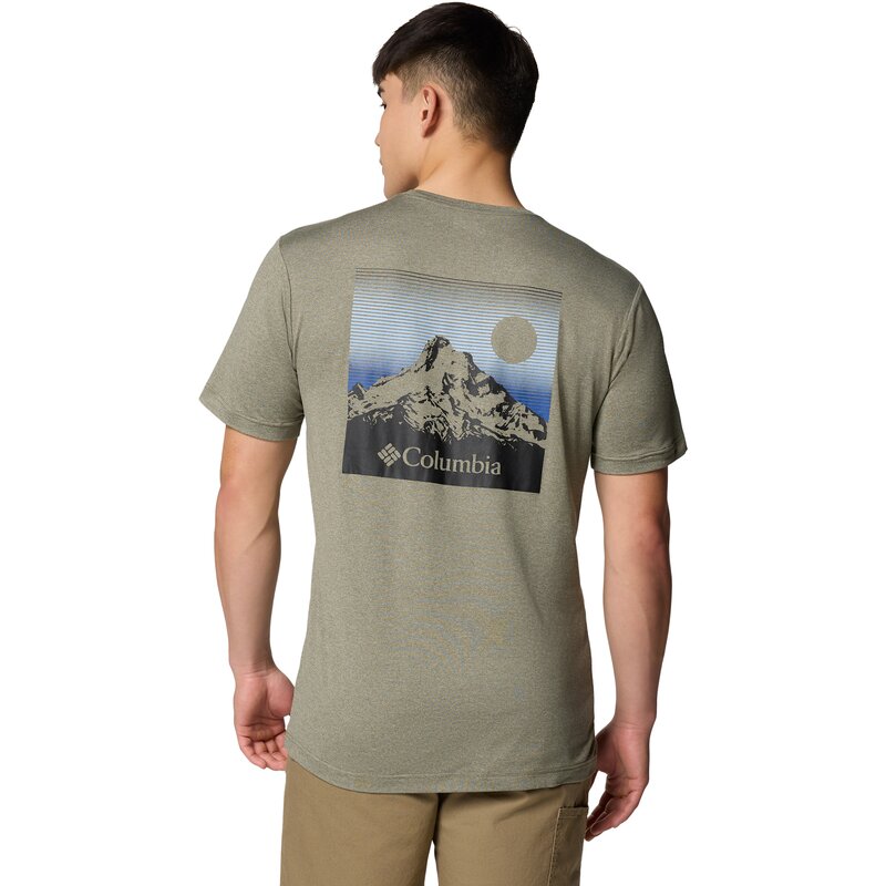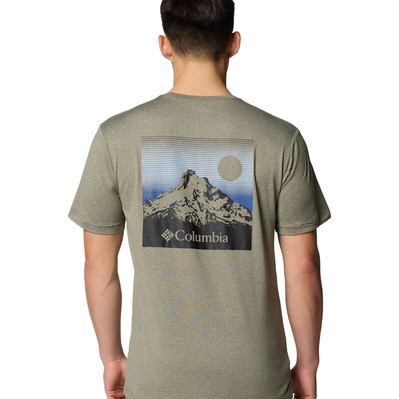 Оставайтесь в форме с этой технологичной мужской футболкой Columbia с принтом. Комфортная эластичная ткань и влагоотводящий материал сохранят свежесть и стильный вид, куда бы вас ни завели приключения.