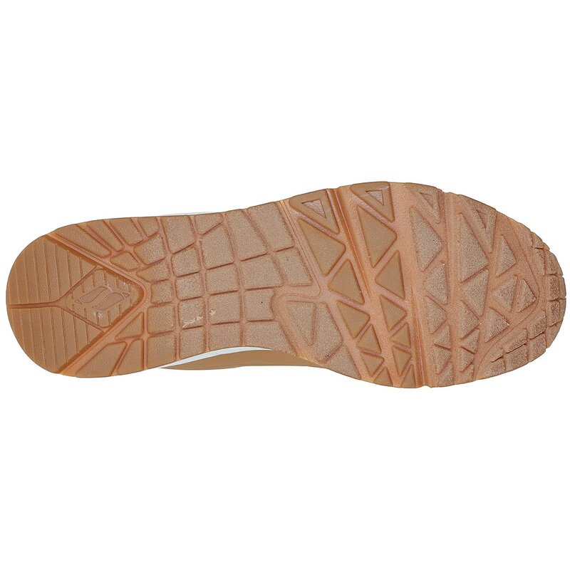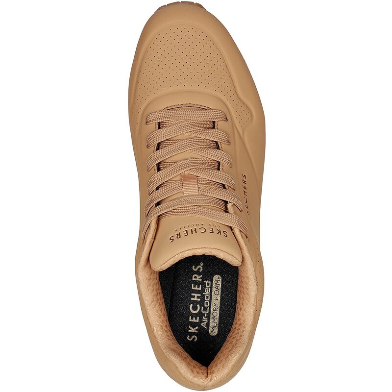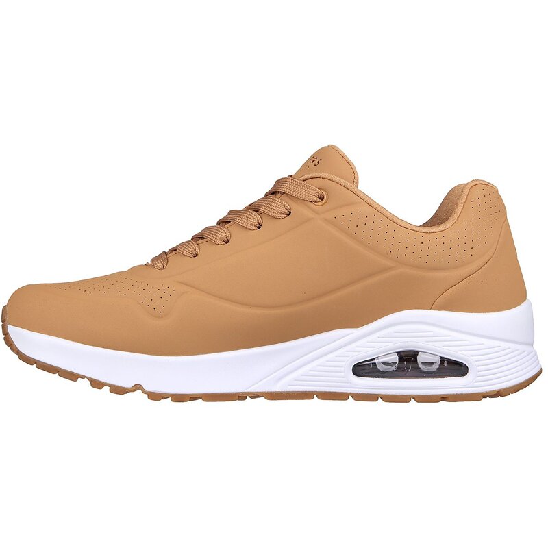 Классический дизайн с воздушной подушкой и современный комфорт в кроссовках SKECHERS Uno - Stand on Air. Классические спортивные кроссовки на шнуровке с верхом из гладкого синтетического материала с текстурой кожи, декорированным строчкой и перфорацией.