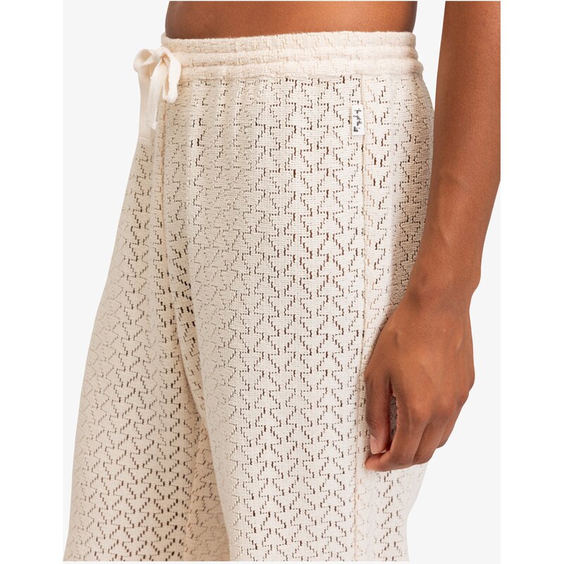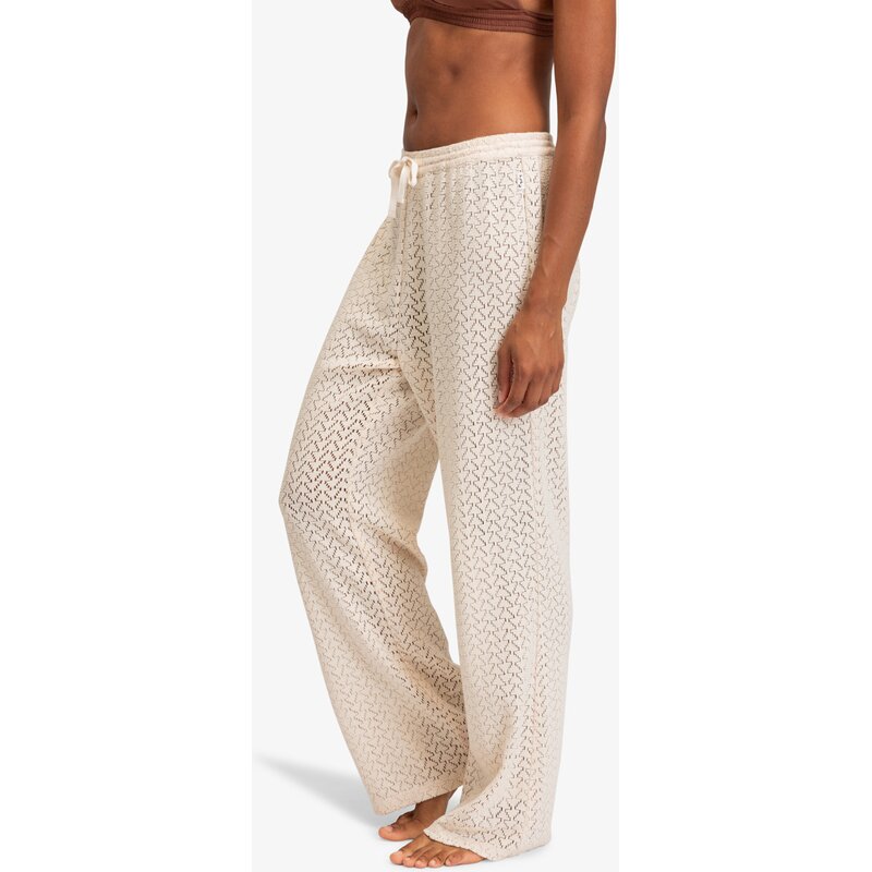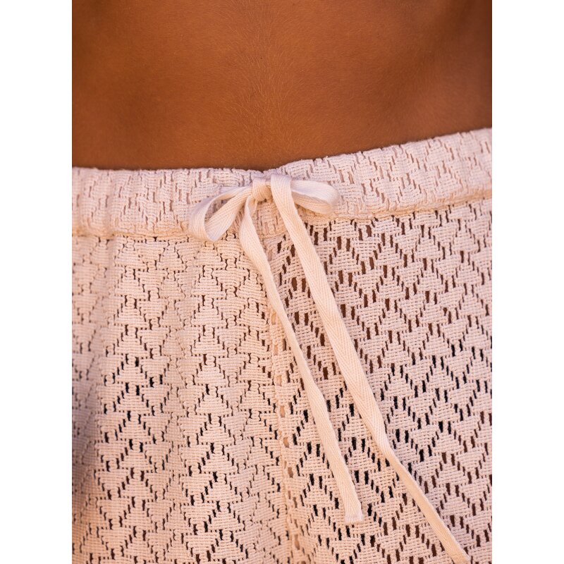 Женские пляжные брюки. Изделие изготовлено из хлопчатобумажной ткани плотностью 250 г/м², имеет эластичный пояс, затягивается на шнурок и украшено тканым флажком на поясе.