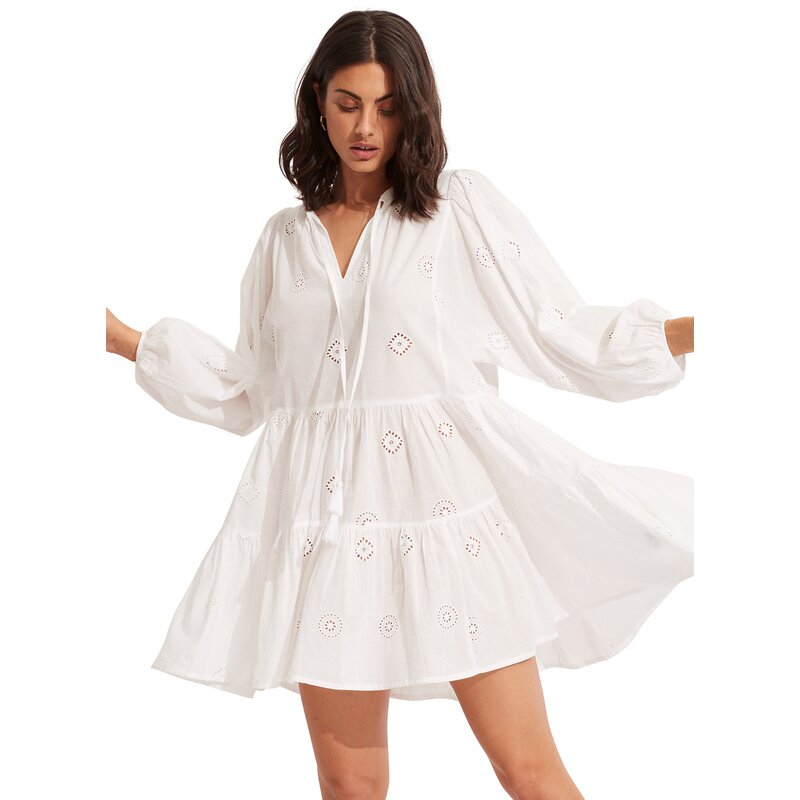 Многоярусное платье с вышивкой Kleid Seafolly, белый