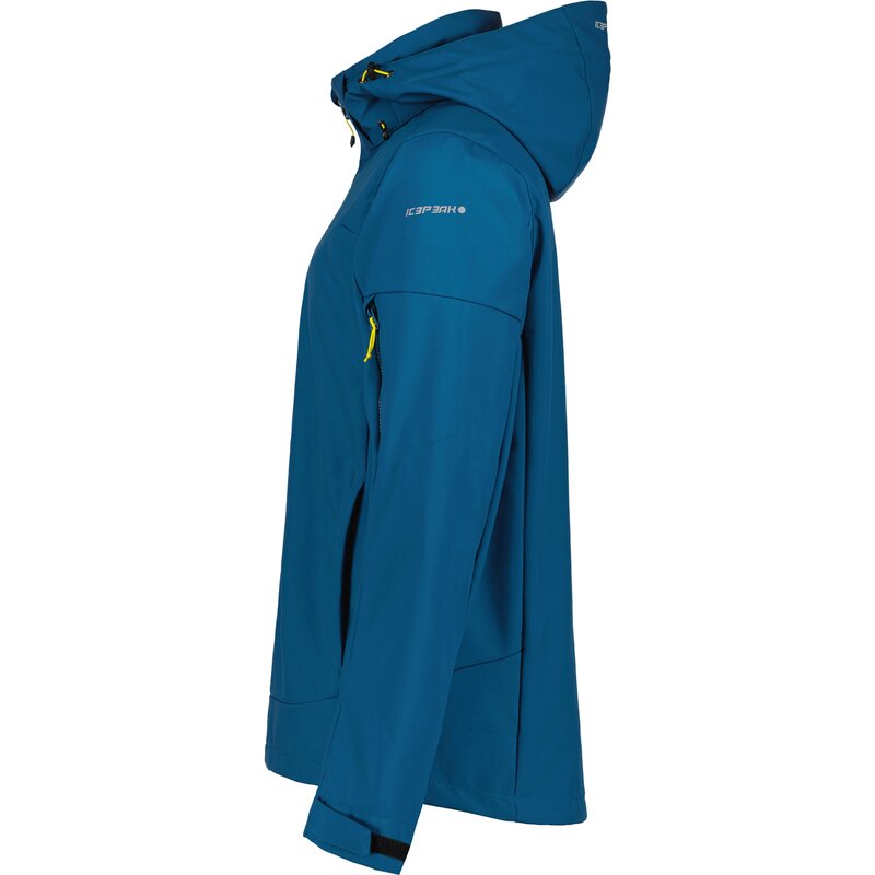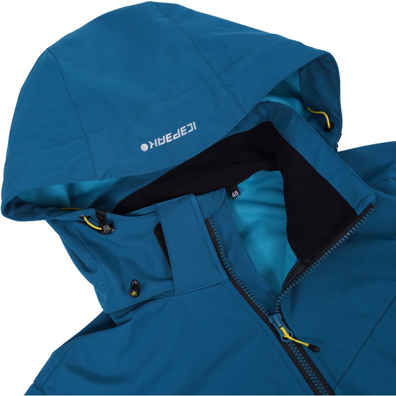 Легкая куртка Icepeak Barmstedt softshell изготовлена из ветронепроницаемого и водонепроницаемого материала и подходит для использования на открытом воздухе круглый год. Передние карманы на молнии с дышащими сетчатыми карманами также служат вентиляционными отверстиями. На левом плече есть дополнительный карман на молнии. Капюшон съемный и регулируемый, также регулируются подол и манжеты.