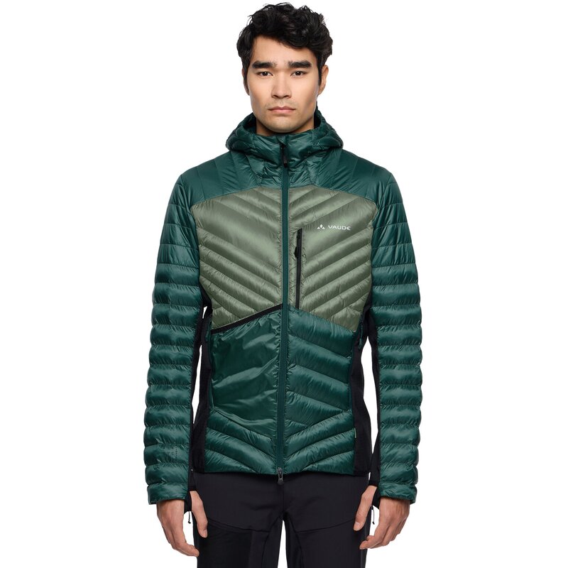 Идеально подходит для низких температур: лёгкая мужская куртка Sesvenna Pro разработана для спортивных горных походов и горнолыжных туров. Она сочетает в себе лучшие качества софтшелла и утеплителя. Инновационный наполнитель этой гибридной мужской куртки — это настоящий прорыв в технологии утепления: она лёгкая и отлично сохраняет тепло. Благодаря этому пушистый наполнитель обладает теми же свойствами, что и пух, но при этом полностью изготовлен из переработанных материалов. Этот синтетический пух сохраняет тепло даже во влажном состоянии и относительно прост в уходе! Для обеспечения оптимального тепла мужской утеплённой куртки утепляющие чешуйки сшиты в камеры, как это обычно бывает с пухом. Софтшелл Storm Fleece на рукавах и по бокам обладает ветро- и водоотталкивающими свойствами, а также обеспечивает отличную воздухопроницаемость и высочайший комфорт при ношении. Приталенный крой мужской утеплённой куртки идеально подходит под хардшелл. Высокий воротник и плотно прилегающий капюшон надёжно защищают от холода. Благодаря двухсторонней молнии утеплённую куртку можно удобно надевать поверх скалолазной обвязки во время страховки или во время ски-тура. Карманы легко доступны с помощью ремня или рюкзака. Шапку или перчатки можно положить в легкодоступный внешний карман. Куртка компактно упаковывается в собственный карман.