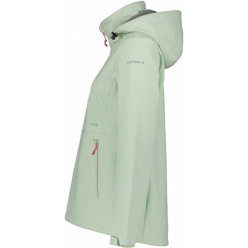 Куртка Icepeak для женщин. Классический крой. Предварительно прошитые локти. Удобный внутренний воротник. Капюшон, регулируемый в двух направлениях. Съемный капюшон. Регулируемые манжеты на липучке. Два передних кармана на молнии. Ветрозащитная планка. Молния с защитой подбородка. Регулируемый подол. Формованный подол. Напечатанный логотип. Водостойкость 8000 мм. Воздухопроницаемость 5000 г/м²/224 ч. При разработке этой куртки AWS ACTIVE особое внимание было уделено функциональности и комфорту, что делает ее подходящей как для интенсивных, так и для спокойных занятий. Softshell — функциональный материал для широкого спектра мероприятий на свежем воздухе. Изделие обеспечивает защиту от непогоды, оставаясь при этом приятно эластичным. Эластичный материал тянется во всех направлениях и обеспечивает полную свободу движений. Пропитка без PFC. Поверхность ткани обработана водоотталкивающей пропиткой. Без подкладки.