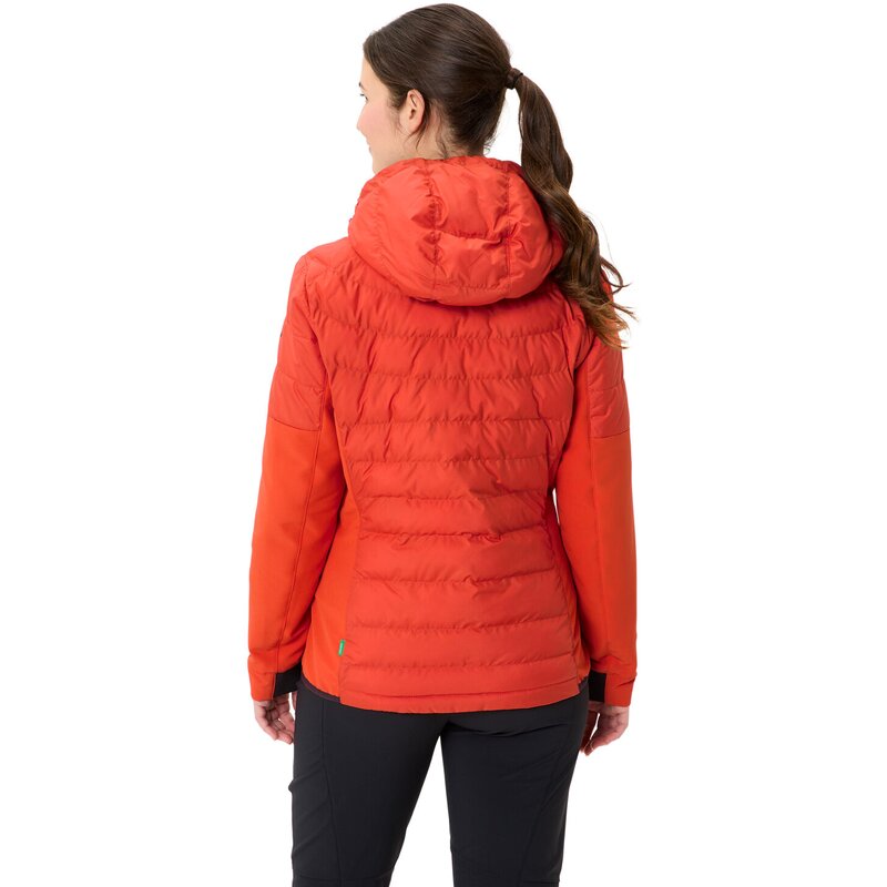 Эта спортивная женская походная куртка превратит осенние и зимние походы в легкое удовольствие. Женская гибридная куртка Elope отличается высокой воздухопроницаемостью и надежно защищает от холода после напряженного восхождения в горы. Женская куртка имеет спортивный крой и в основном ветронепроницаема. Эластичный, воздухопроницаемый и экологически чистый материал на рукавах и по бокам обеспечивает отличную свободу движений. Ценные вещи можно безопасно разместить в двух практичных карманах на молнии снаружи и одном внутри. Чтобы сохранить тепло даже в более прохладную погоду, женская куртка наполнена пухоподобным синтетическим волокном на корпусе и на плечах. Утеплитель Heatsphere Eco изготовлен из 100% переработанных ПЭТ-бутылок, сохраняет тепло даже в сырую погоду и сохнет в два раза быстрее пуха. Женская куртка чрезвычайно легкая и простая в уходе. Капюшон индивидуально регулируется для защиты головы от ветра и непогоды. Женская куртка Elope Hybrid — идеальный выбор для активных женщин, которые не боятся высоты и ценят защиту климата. Все материалы этой женской куртки изготовлены из переработанного полиэстера. Знак VAUDE Green Shape означает экологичность и функциональность изделия из экологичных материалов, сертифицированных Bluesign.