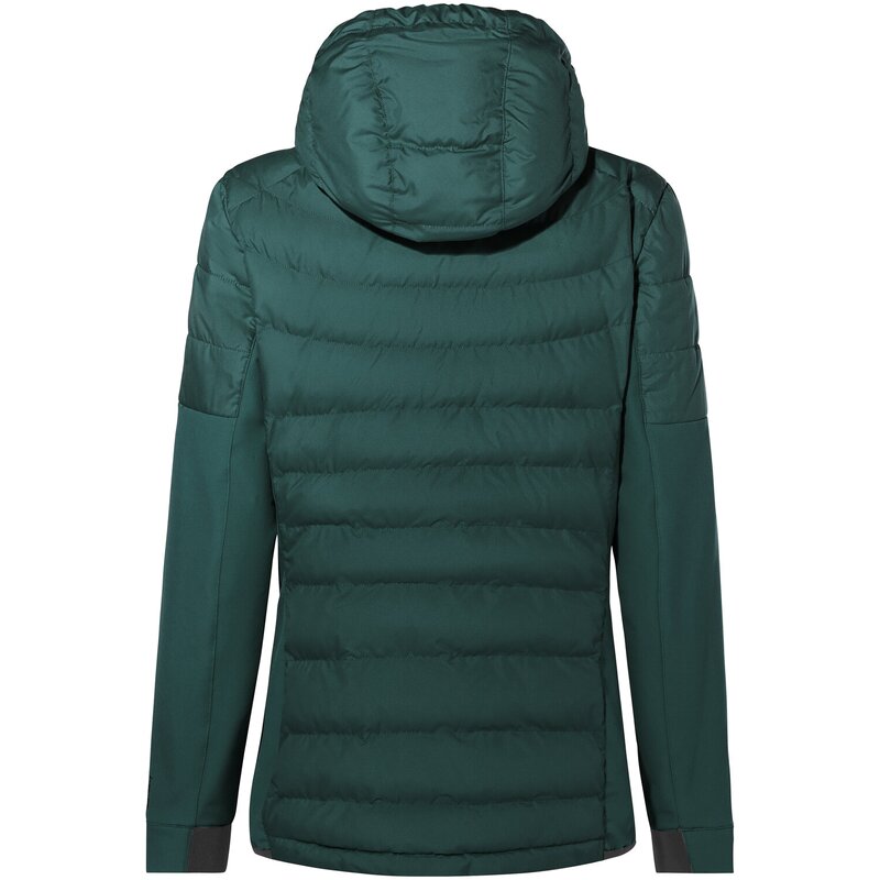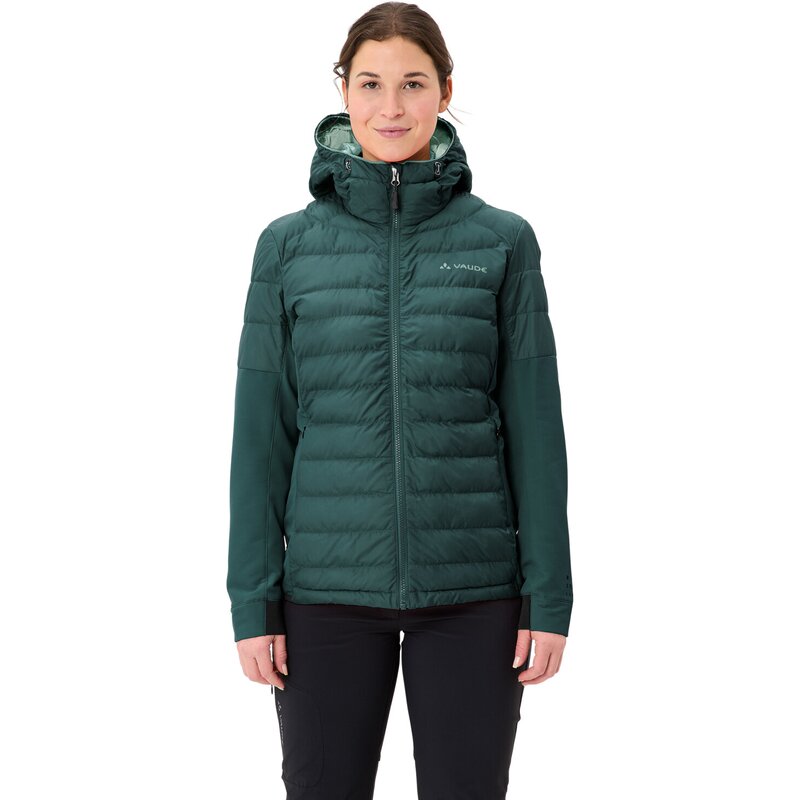 Эта спортивная женская походная куртка превратит осенние и зимние походы в легкое удовольствие. Женская гибридная куртка Elope отличается высокой воздухопроницаемостью и надежно защищает от холода после напряженного восхождения в горы. Женская куртка имеет спортивный крой и в основном ветронепроницаема. Эластичный, воздухопроницаемый и экологически чистый материал на рукавах и по бокам обеспечивает отличную свободу движений. Ценные вещи можно безопасно разместить в двух практичных карманах на молнии снаружи и одном внутри. Чтобы сохранить тепло даже в более прохладную погоду, женская куртка наполнена пухоподобным синтетическим волокном на корпусе и на плечах. Утеплитель Heatsphere Eco изготовлен из 100% переработанных ПЭТ-бутылок, сохраняет тепло даже в сырую погоду и сохнет в два раза быстрее пуха. Женская куртка чрезвычайно легкая и простая в уходе. Капюшон индивидуально регулируется для защиты головы от ветра и непогоды. Женская куртка Elope Hybrid — идеальный выбор для активных женщин, которые не боятся высоты и ценят защиту климата. Все материалы этой женской куртки изготовлены из переработанного полиэстера. Знак VAUDE Green Shape означает экологичность и функциональность изделия из экологичных материалов, сертифицированных Bluesign.