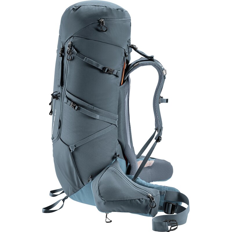 Система спинки Aircontact с сетчатой вставкой Air Spacer Mesh и большим вентиляционным каналом, удобные плечевые лямки, регулируемые набедренные поясницы и эргономичная поясничная накладка обеспечивают высокий комфорт при переноске и оптимальное распределение нагрузки. Большое J-образное переднее отверстие обеспечивает лёгкий и быстрый доступ к содержимому рюкзака. Кроме того, съёмные трёхлитровые карманы на набедренных поясницах обеспечивают дополнительный объём для личных вещей. И даже бутылки с водой объемом до 1,5 литра поместятся в откидном кармане.