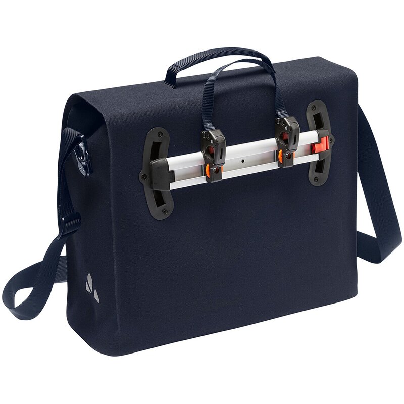 Задний кофр Bayreuth L размером с портфель среднего размера изготовлен из прочного полиамида с текстильным эффектом, имеет водонепроницаемые сварные швы и не содержит ПВХ. 15-дюймовый ноутбук надежно защищен в отделении с мягкой подкладкой; остальные документы формата A4 помещаются в основное отделение. Светлый внутренний материал обеспечивает удобную организацию: держатель ключей, карман для мобильного телефона с мягкой подкладкой, держатель для ручки и петля для бутылки с водой дополняют внутреннее пространство. Регулируемая система крепления Plug and Ride позволяет быстро и легко прикреплять и снимать сумку с велокреплений (диаметром до 16 мм) с помощью крючков QMR. С помощью небольшого U-образного замка (например, VAUDE TSA Combination Lock II, не входит в комплект) велосумку можно зафиксировать непосредственно на крючке QMR. Небольшие «ножки» на дне обеспечивают устойчивость, и сумку можно удобно носить пешком, держа за ручку или на мягком плечевом ремне. Светоотражающие элементы спереди и по бокам повышают видимость. Велосумка производится в штаб-квартире VAUDE на юге Германии с использованием высокочастотной технологии, что обеспечивает лаконичный дизайн и высокое качество «Сделано в Германии».