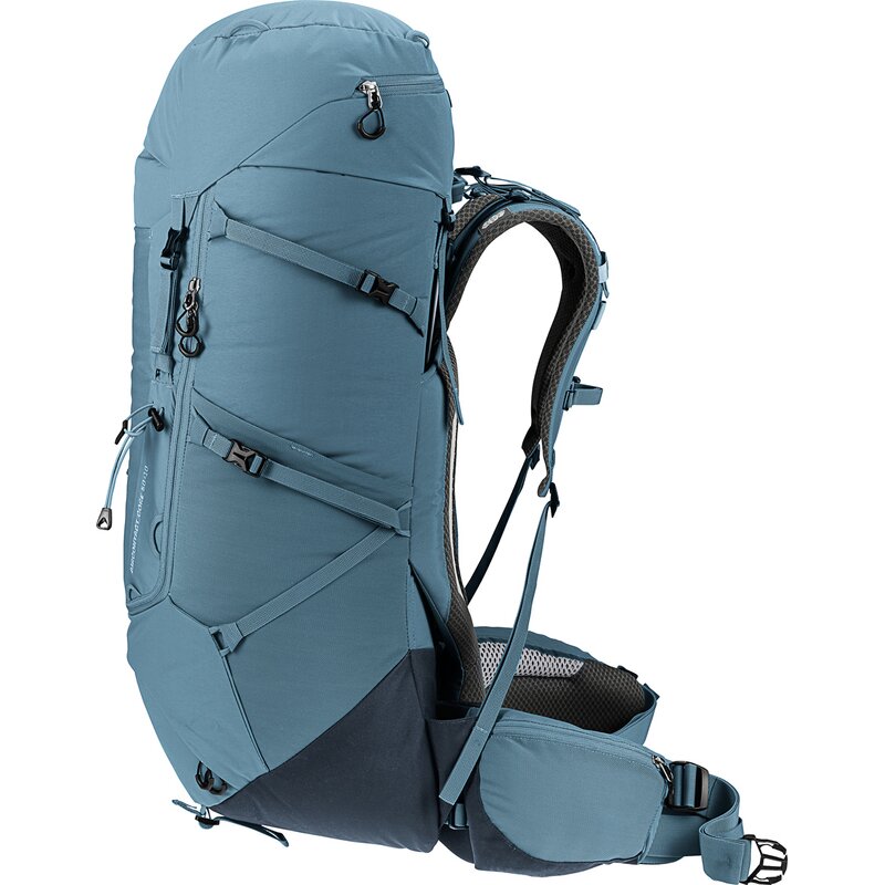 Удобный и универсальный рюкзак благодаря съёмным компрессионным ремням, которые можно менять в зависимости от назначения и снаряжения, что позволяет использовать широкий спектр навесных приспособлений. Удобство переноски обеспечивается системой Aircontact с сетчатой вставкой Air Spacer Mesh и большим вентиляционным каналом, эргономичными плечевыми ремнями и регулируемым нагрудным ремнём. Прочная алюминиевая Y-образная рама, подвижные, точно прилегающие набедренные ремни и эргономичная трапециевидная поясничная накладка обеспечивают оптимальное распределение нагрузки и контроль.