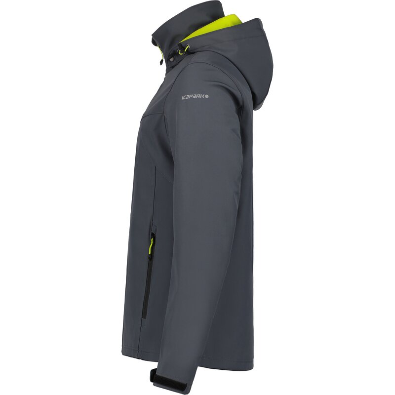 Куртка Icepeak Softshell для мужчин. Классический крой. Формованные локти. Удобный внутренний воротник. Капюшон регулируется в двух направлениях. Съемный капюшон. Регулируемые манжеты на липучке. Два передних кармана на молнии. Ветрозащитная планка. Молния с защитой подбородка. Регулируемый подол. Напечатанный логотип. Водостойкость 8000 мм. Воздухопроницаемость 3000 г/м²/224 ч. При разработке этой модели AWS ACTIVE особое внимание было уделено функциональности и комфорту, что делает ее подходящей как для интенсивных, так и для спокойных занятий. Softshell — функциональный материал для широкого спектра активного отдыха. Изделие обеспечивает защиту от непогоды, оставаясь при этом приятно эластичным. Водоотталкивающая пропитка без ПФУ. Поверхность ткани обработана водоотталкивающим средством. Без подкладки.