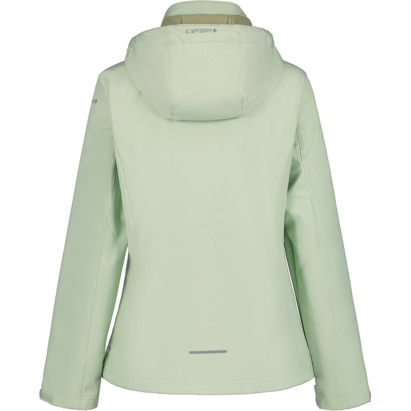 Женская куртка Icepeak. Классический крой. Формованные локти. Удобный внутренний воротник. Капюшон с двухсторонней регулировкой. Съемный капюшон. Регулируемые манжеты на липучке. Два передних кармана на молнии. Ветрозащитная планка. Молния с защитой подбородка. Регулируемый подол. Напечатанный логотип. Водостойкость 8000 мм. Воздухопроницаемость 3000 г/м²/224 ч. При разработке этой модели AWS ACTIVE особое внимание было уделено функциональности и комфорту, что делает ее подходящей как для интенсивных, так и для спокойных занятий. Softshell — функциональный материал для широкого спектра активного отдыха. Изделие обеспечивает защиту от непогоды, оставаясь при этом приятно эластичным. Водоотталкивающая пропитка без ПФУ. Поверхность ткани обработана водоотталкивающим средством. Без подкладки.